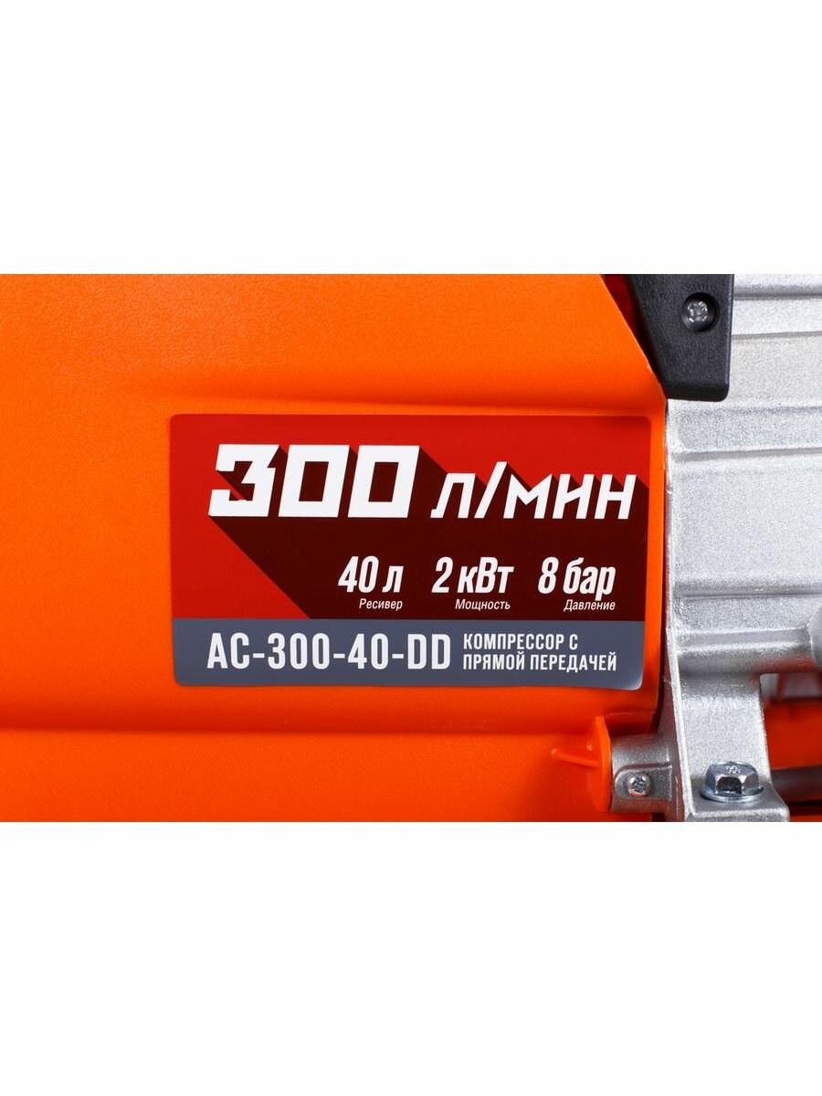 Компрессор воздушный Кратон AC_300-40-DD+ / масляный с прямой передачей, 2000 Вт, 300 л/мин, ресивер 40 л, 8 бар