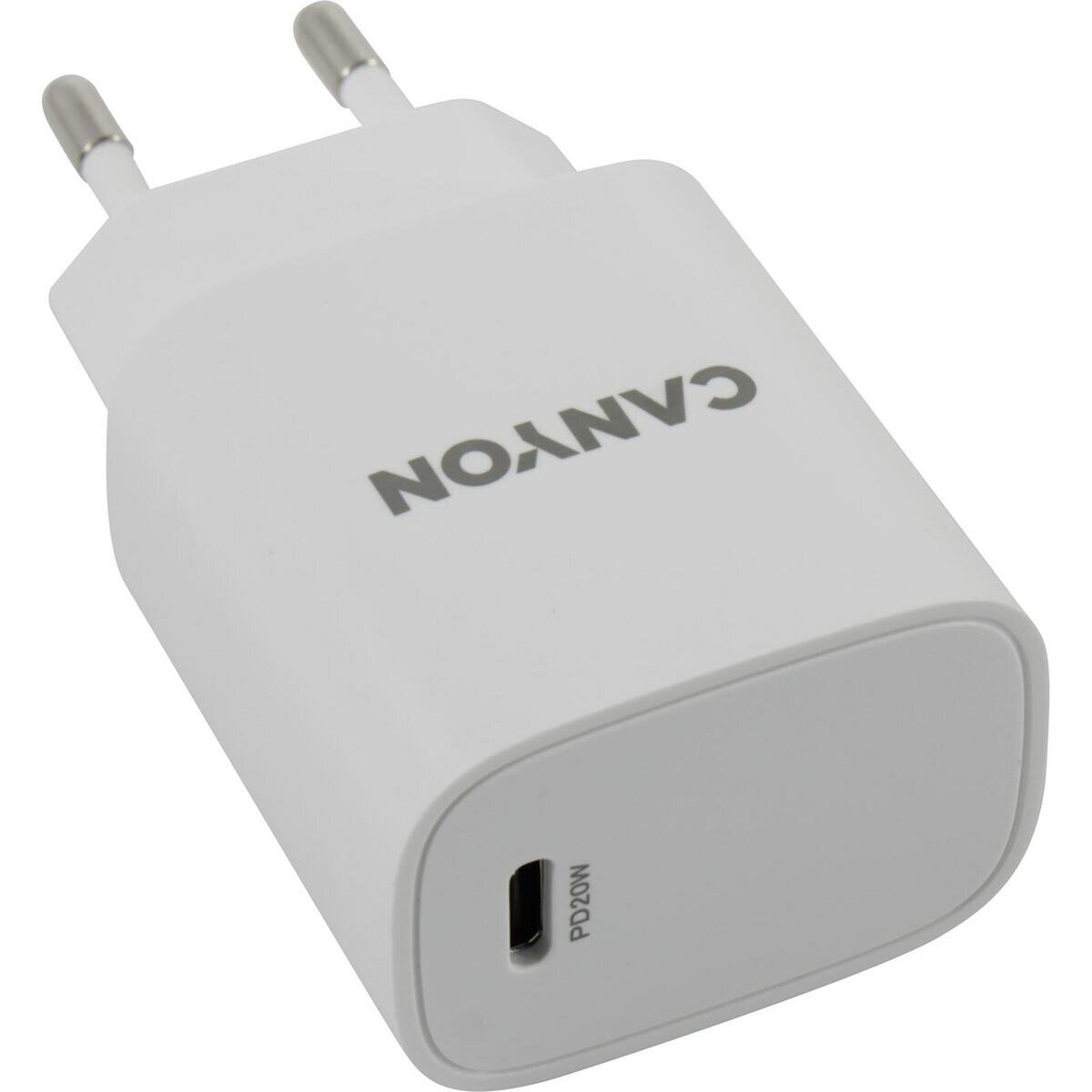 Купить Сетевое зарядное устройство (адаптер питания) Canyon H20-02, USB Type-C, до 20Вт, Белый CNE-CHA20W02