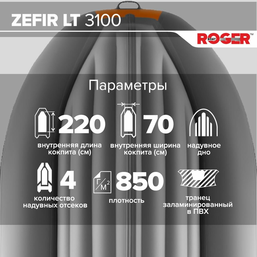 Купить Лодка надувная ПВХ под мотор ROGER Zefir 3100 LT, лодка роджер НДНД малый киль (графит-оранжевый)