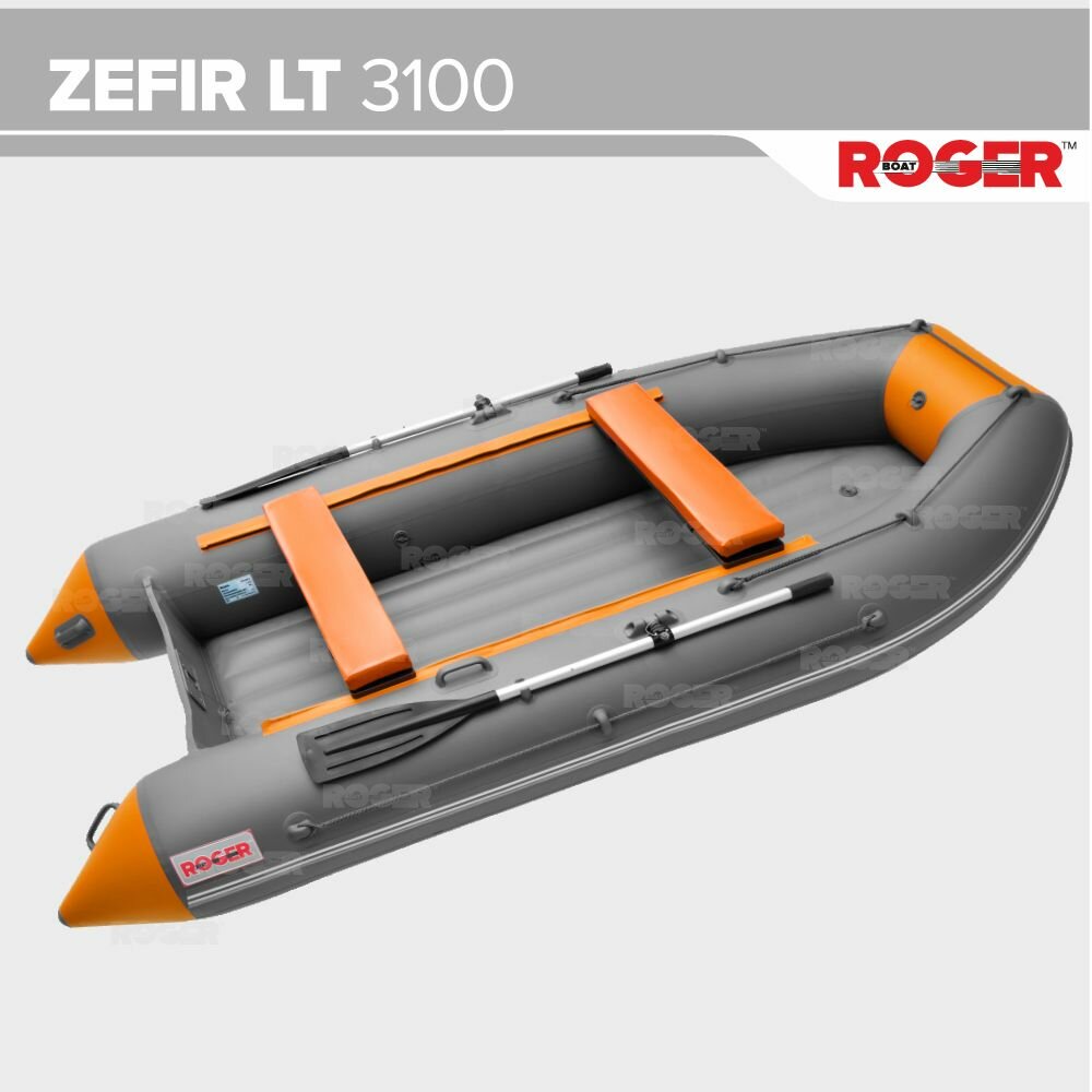 Лодка надувная ПВХ под мотор ROGER Zefir 3100 LT, лодка роджер НДНД малый киль (оранжевый-графит комбинированный)