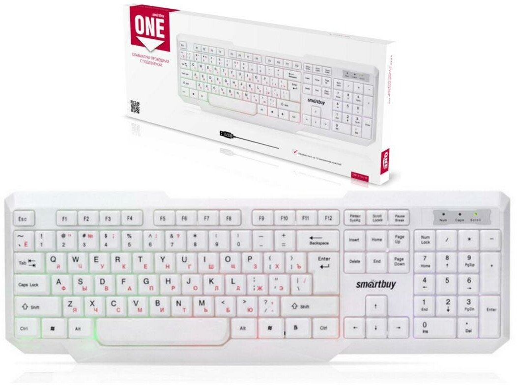 Клавиатура Smartbuy ONE 333 подсветкой USB белая (SBK-333U-W)/20 - 1 шт.