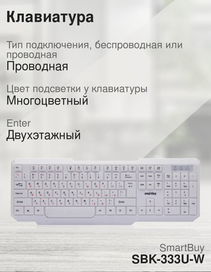 Клавиатура SmartBuy SBK-333U-W White USB белый, английская/русская (ISO), 1 шт.