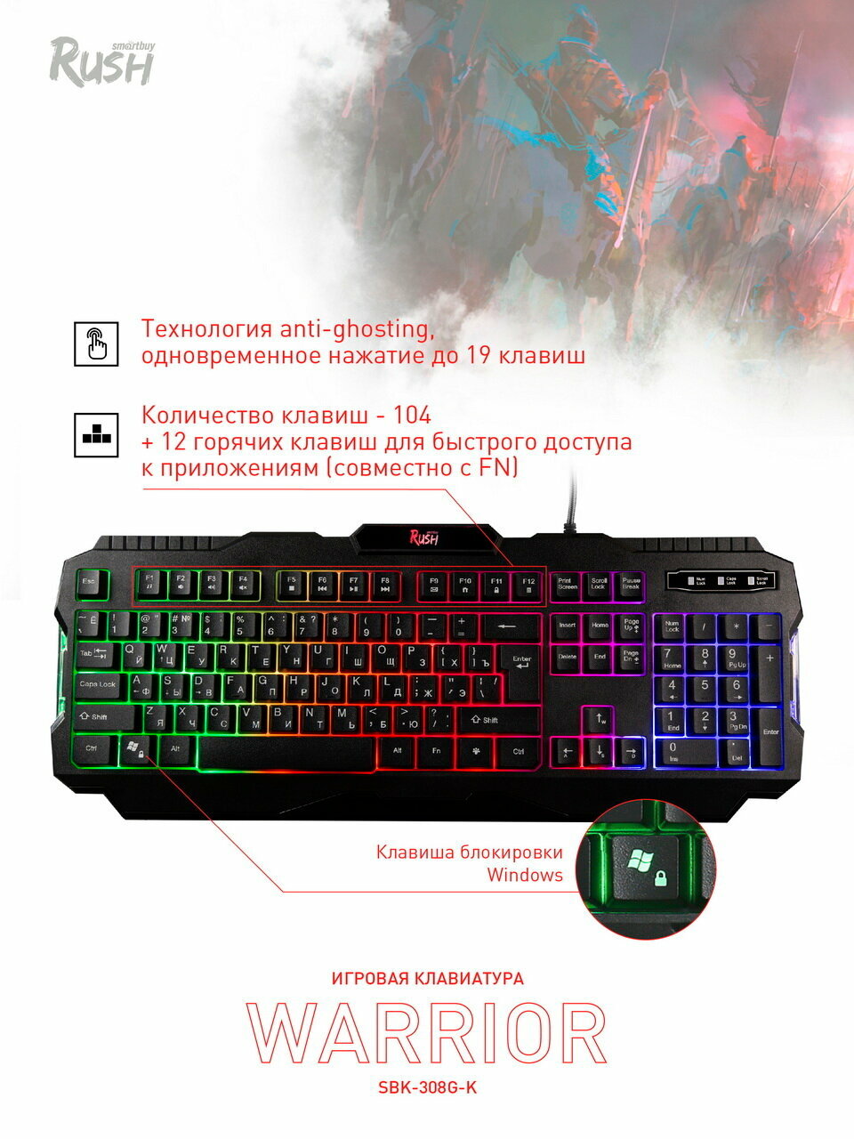 Клавиатура игровая Smartbuy RUSH Warrior 308 USB черная (SBK-308G-K)/20