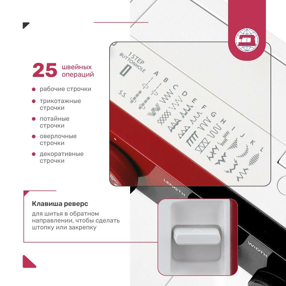 Швейная машина Janome 1522RD, вертикальный челнок, 25 операций интересное: