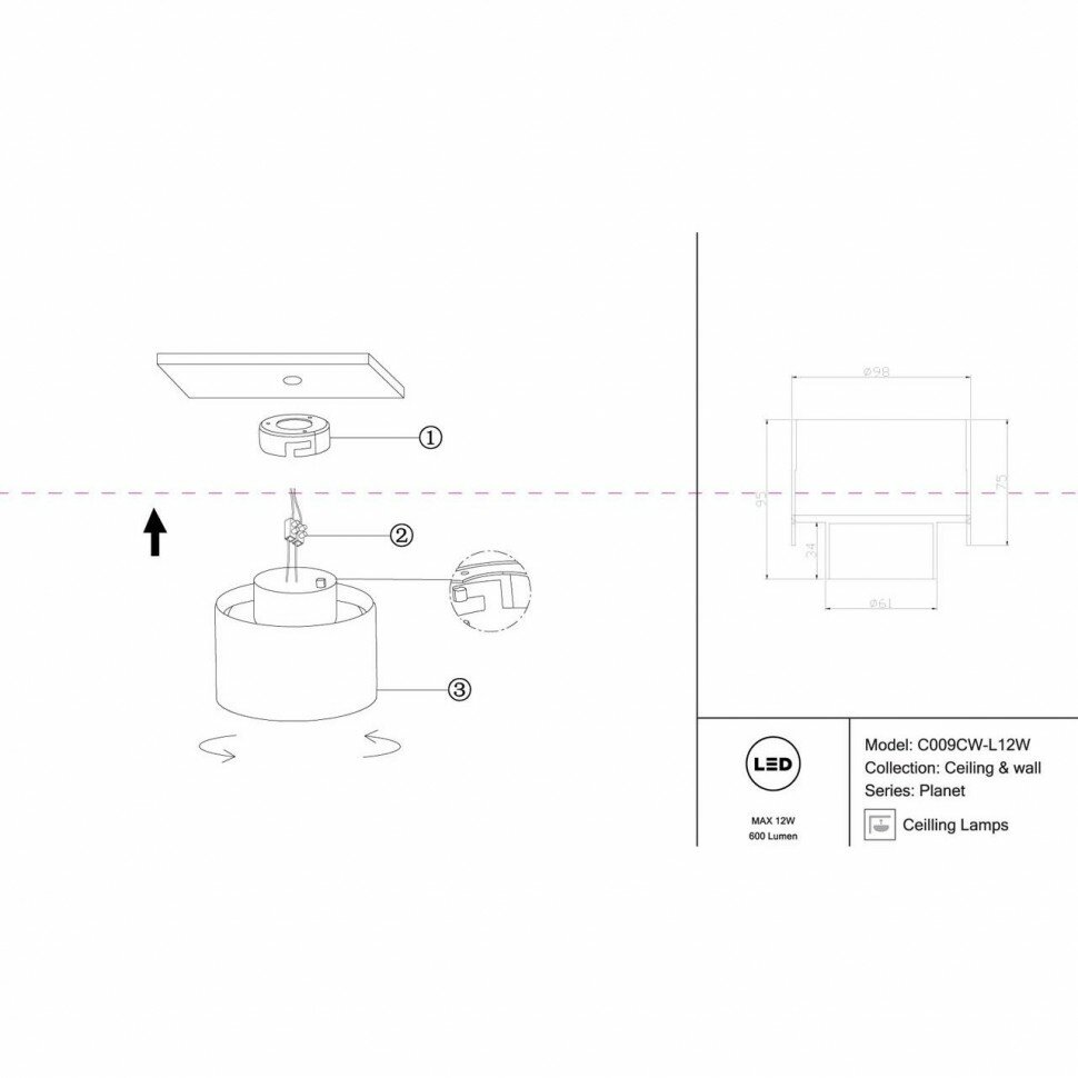 Technical *Накладной светильник Maytoni Planet C009CW-L12W