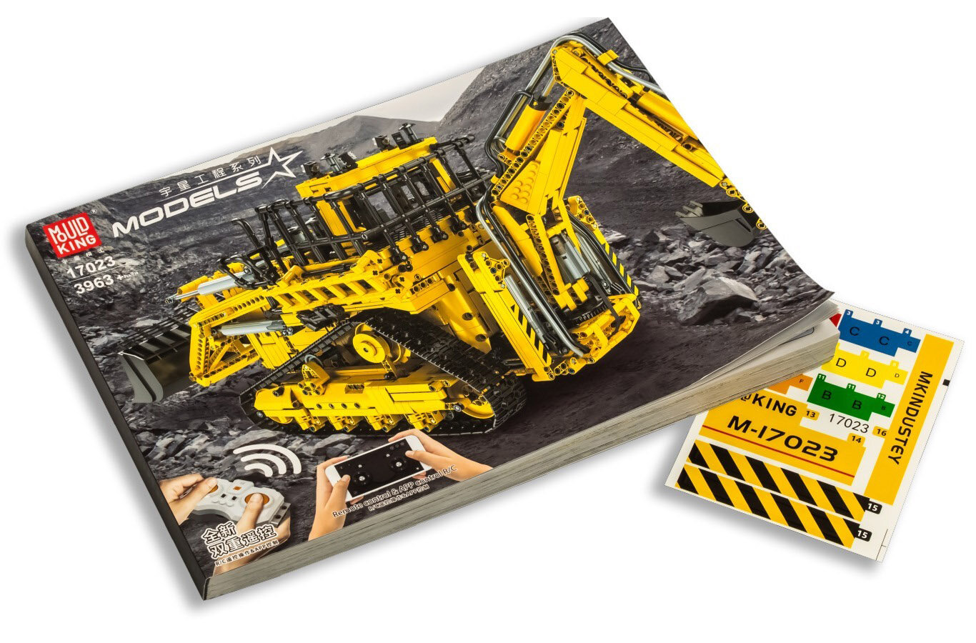 Конструктор Mould King 17023 Пневматический бульдозер-экскаватор, с ДУ и моторизацией (желтый), 3963 дет.