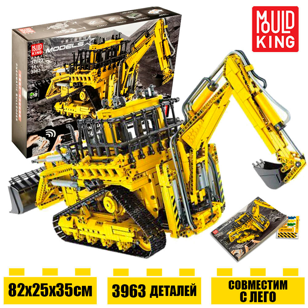 Конструктор Mould King 17023 Пневматический бульдозер с ДУ из 3963 деталей, серии Technic, Электромеханические