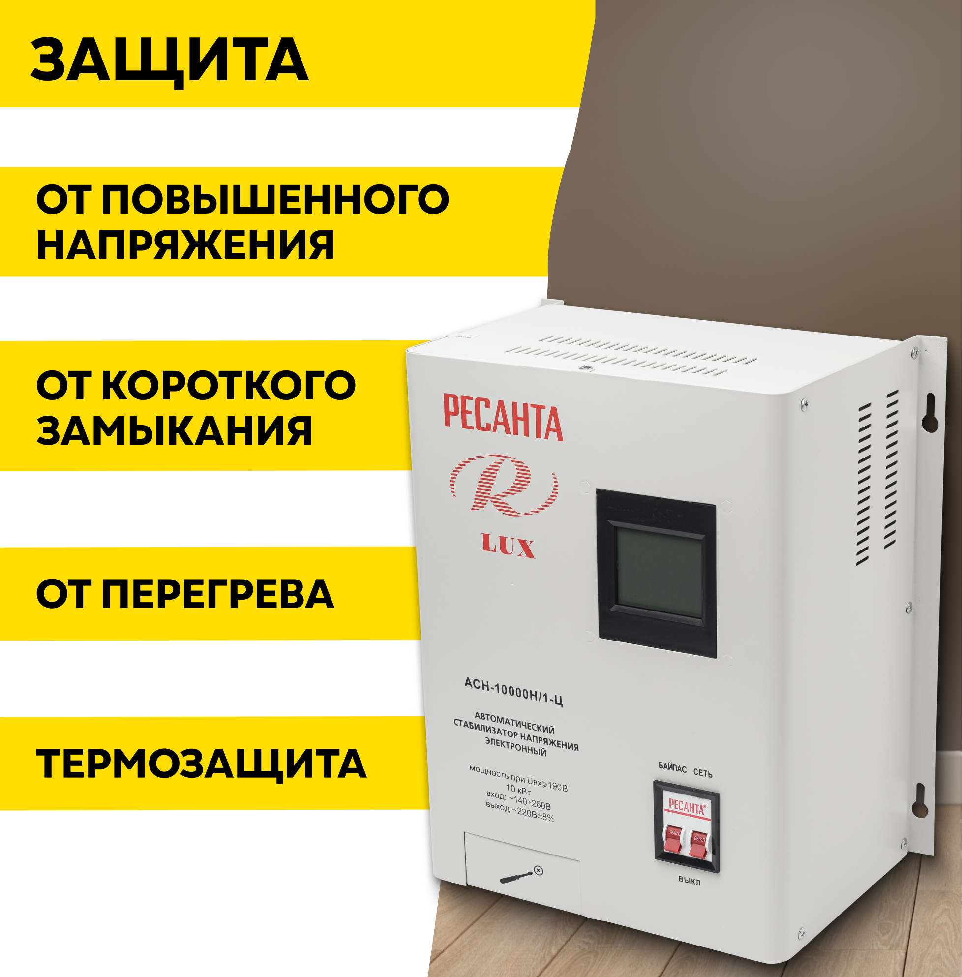 СохранитьСтабилизатор напряжения серии LUX РЕСАНТА АСН-10000Н/1-Ц, 10 кВт, настенный интересное: