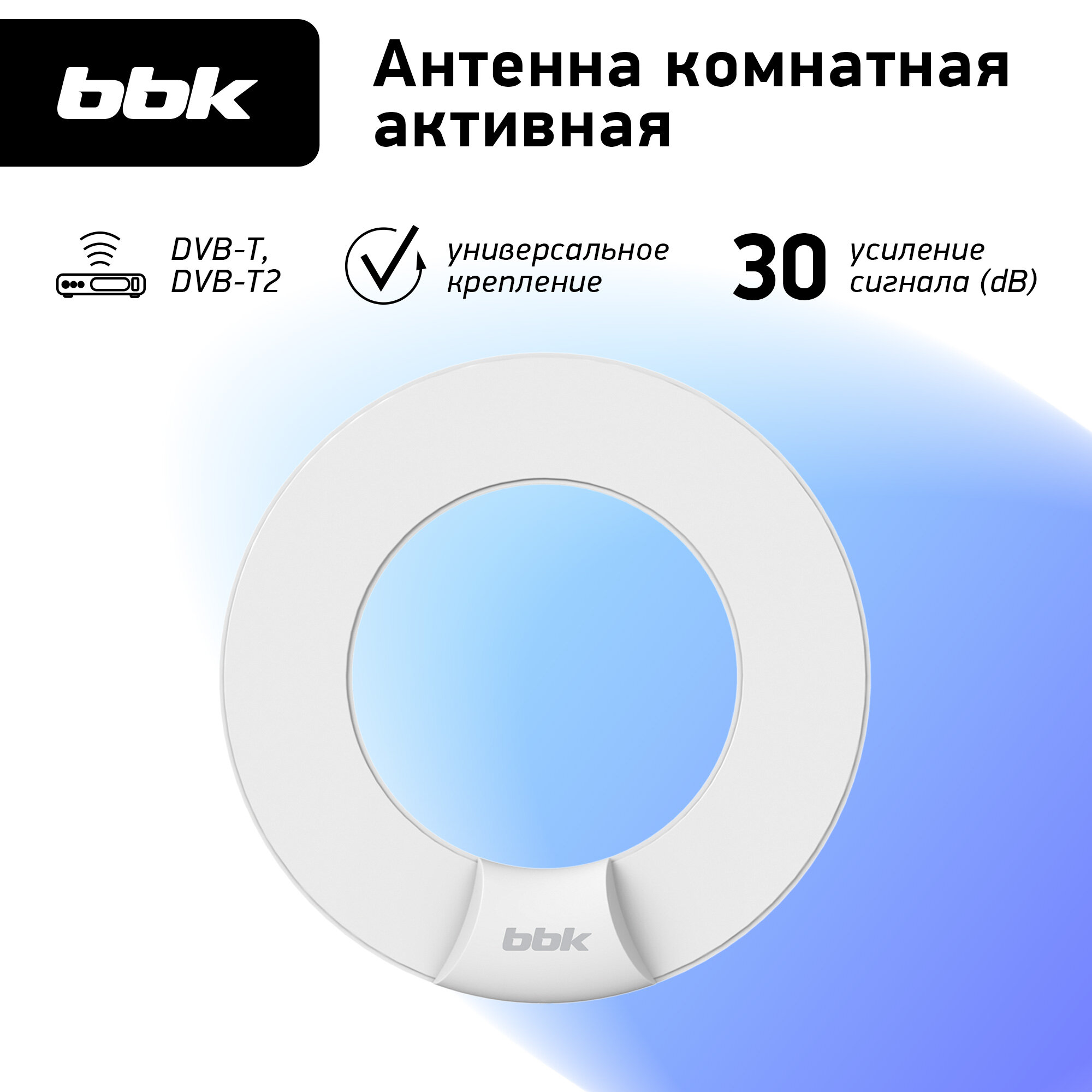 Антенна цифровая комнатная активная BBK DA24 белый, DVB-T2, коэффициент усиления 30 dB
