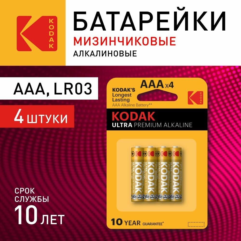 Батарейка Kodak Ultra Premium Alkaline AAA (LR03), в упаковке: 4 шт.