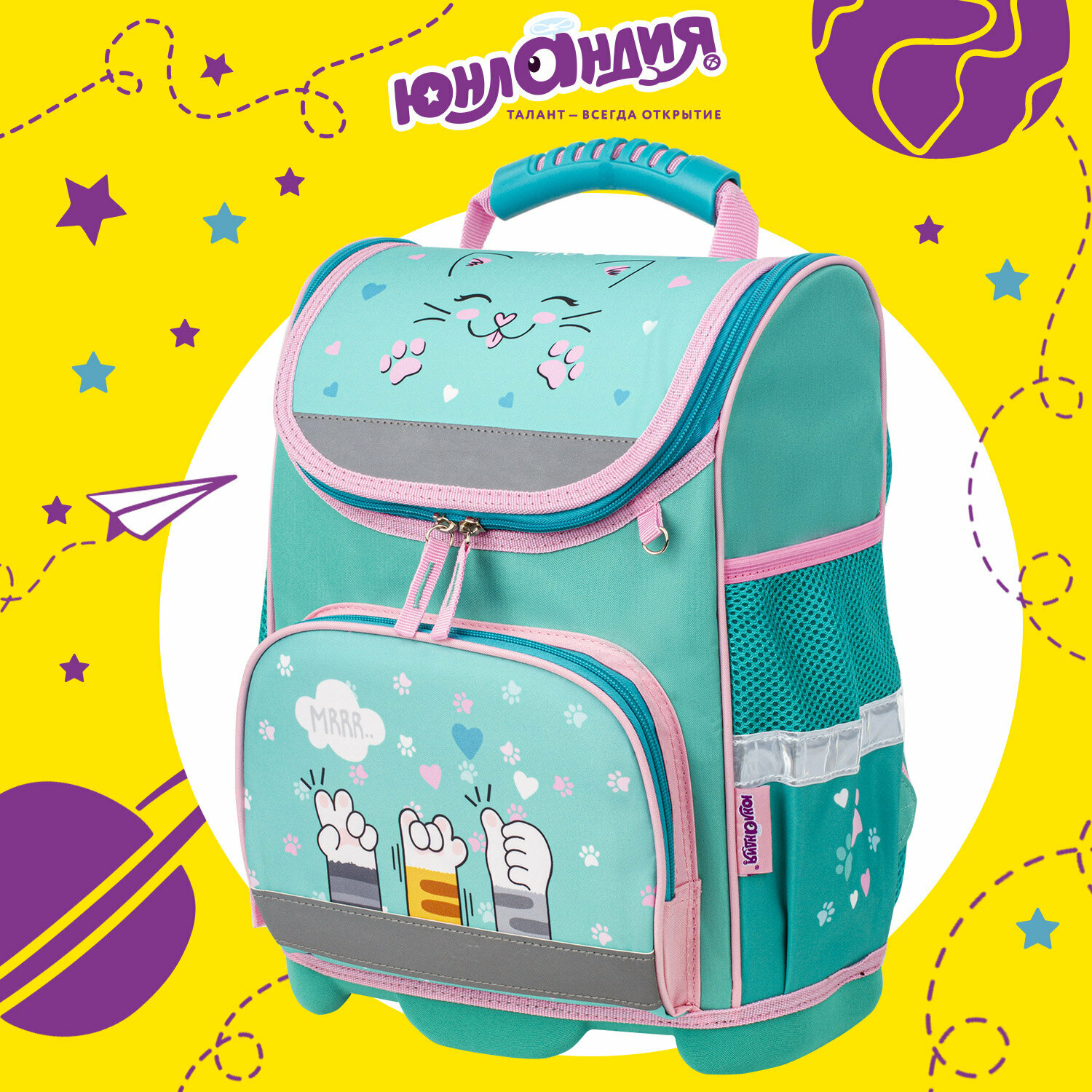 Ранец ортопедический школьный Юнландия для девочки, Wise, для начальной школы, Soft paws, 37х29х15 см (229946)