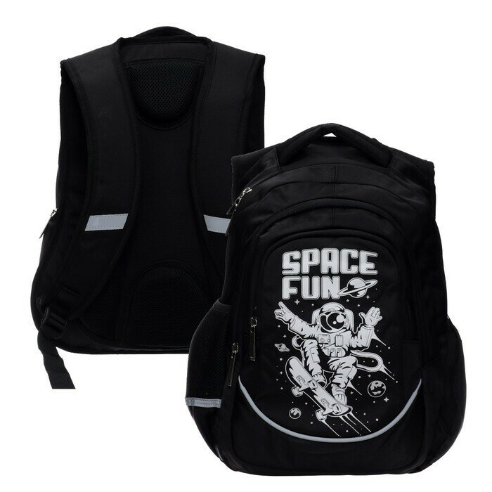 Ранец с эргономичной спинкой 1 отделение 4 кармана 27,5*43*13 см "Черный космос"