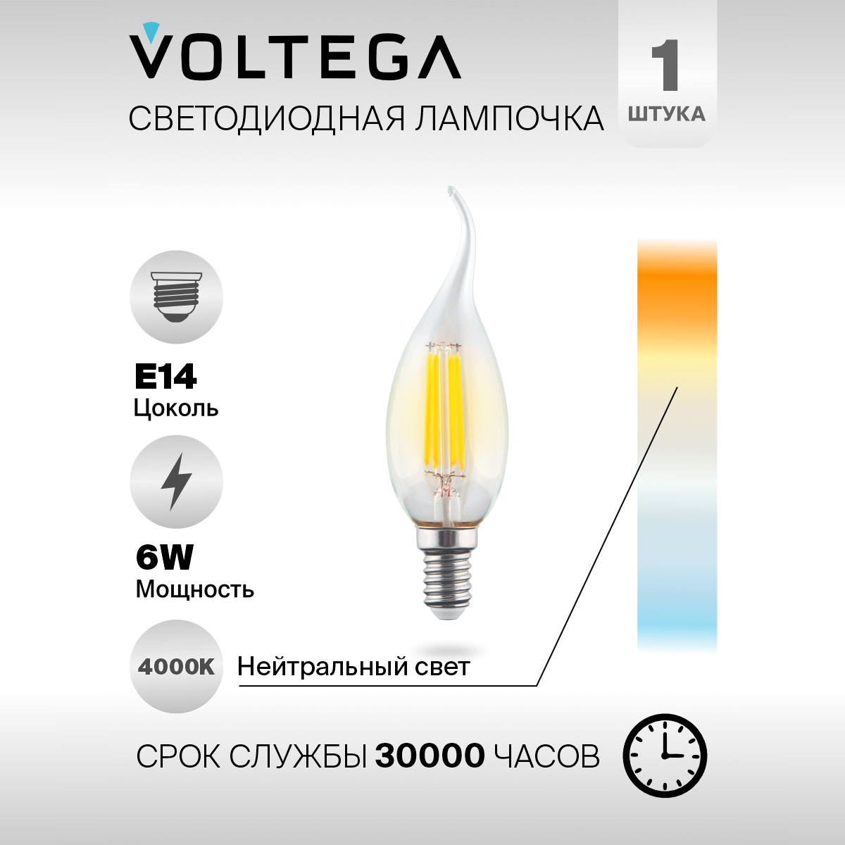 Купить Лампочка светодиодная E14 форма свеча на ветру 6W нейтральный свет Voltega Crystal Candle wind 4000K 1 штука