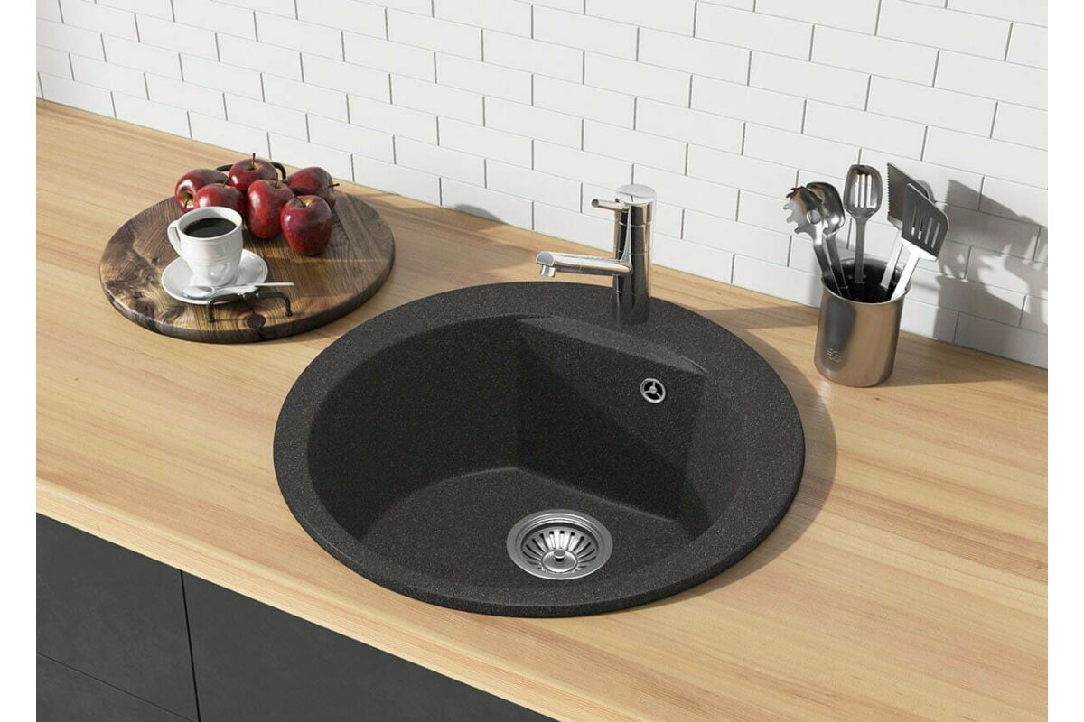 СохранитьМойка для кухни POLYGRAN ATOL-520 каменная, врезная, раковина кухонная, круглая с отверстием под смеситель (№316 Космос) интересное: