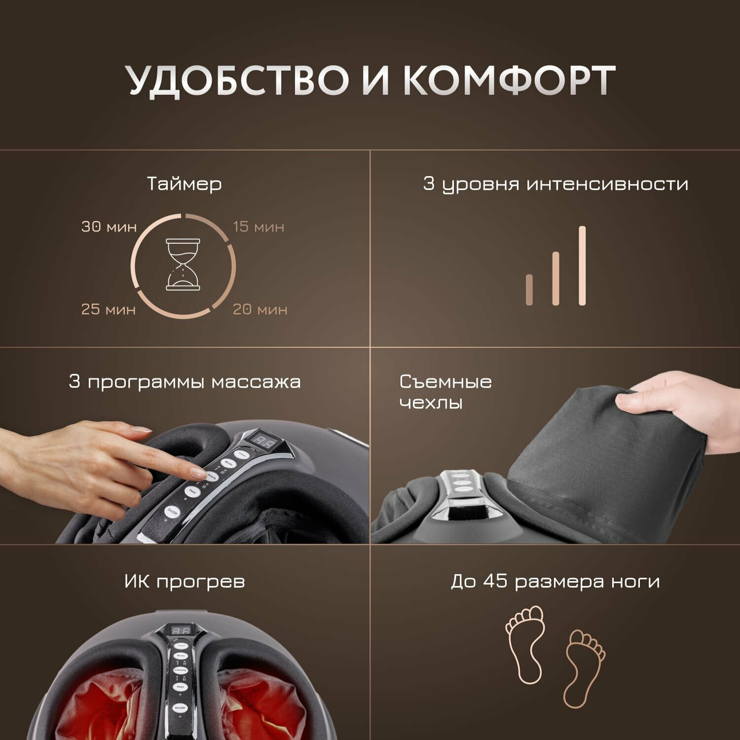 | Отзыв: | Получил в подарок на ДР, каждый день пользуюсь. Как раз стопы болели после похода, прямо в тему подарок. Стопы прошли, а я так и подсел на массаж, сейчас пишу, а ноги в массажере.... |