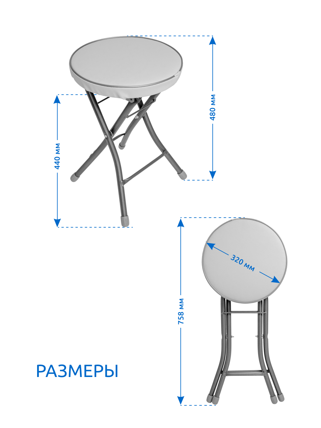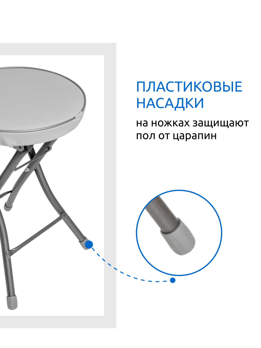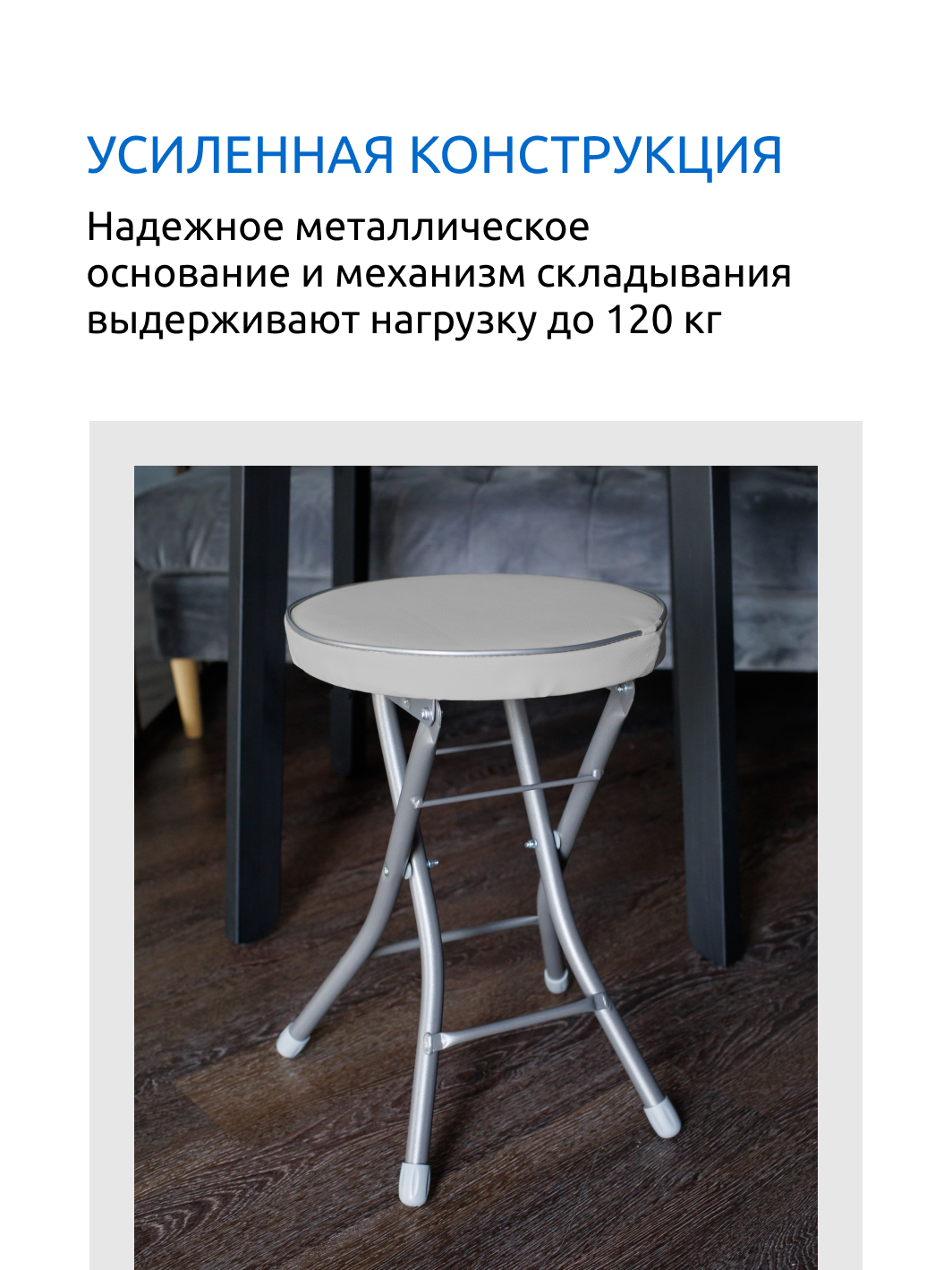 Табурет складной Nika, мягкое круглое сиденье, d 32 см, серый