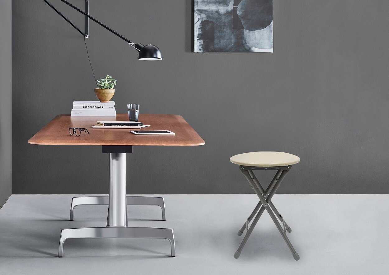 Табурет складной (ТБСК2/2 светло-серый) (4/1) мягкое круглое сидение простой механизм складывания н .
