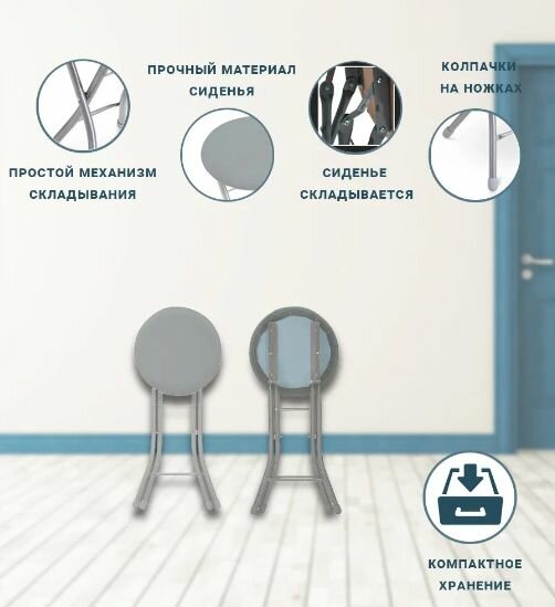 Табурет складной (ТБСК2/2 светло-серый) (4/1) мягкое круглое сидение простой механизм складывания н .