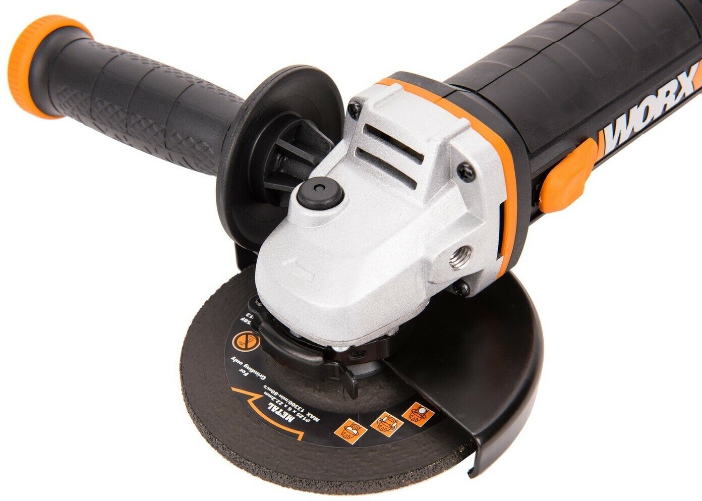 Купить Угловая шлифмашина аккумуляторная WORX WX803, 125 мм, 20 В, АКБ 2/4 Ач, ЗУ 2A, кейс