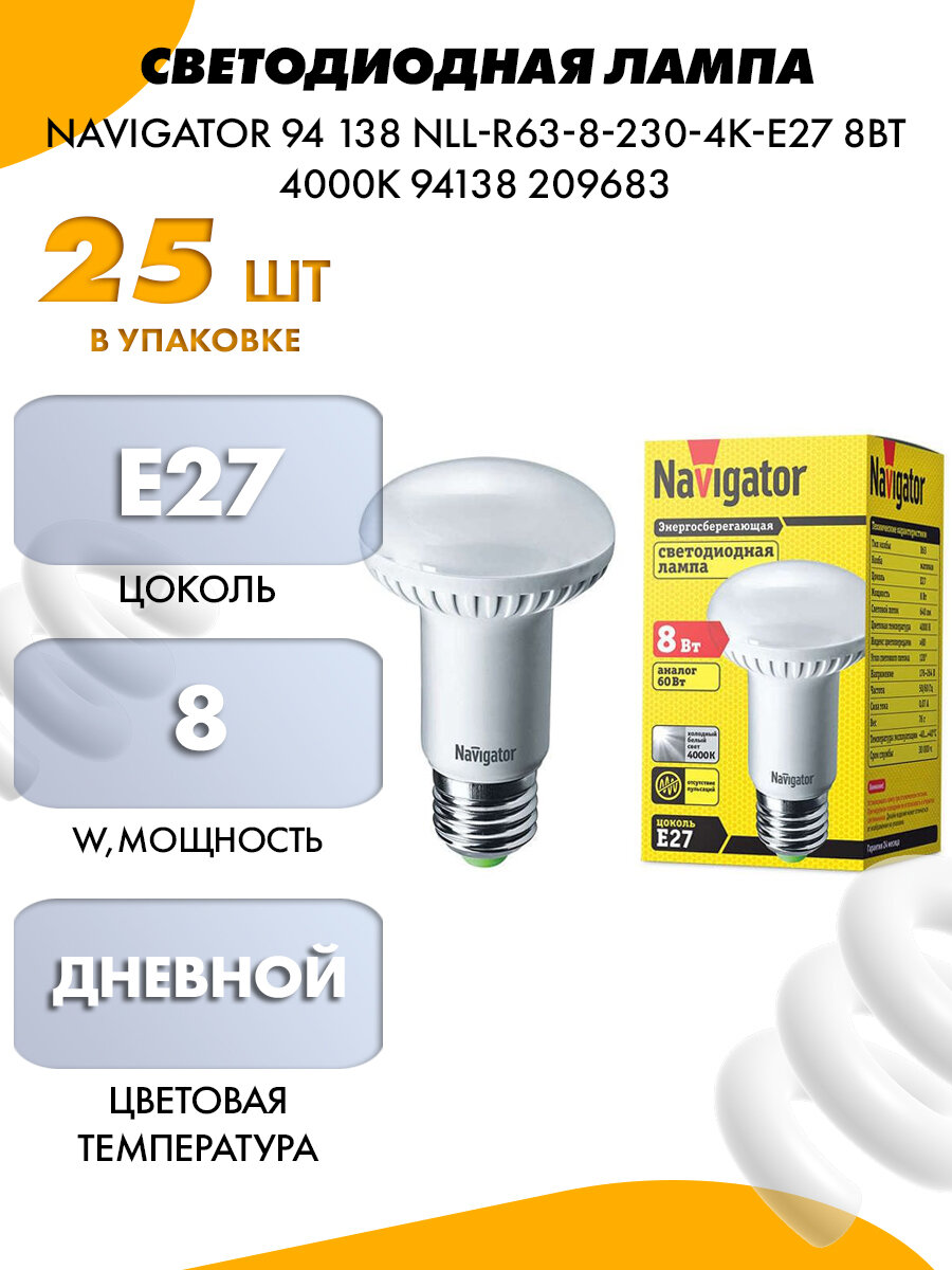 94138 Лампа Navigator NLL-R63-8-230-4K-E27, упаковка 10шт