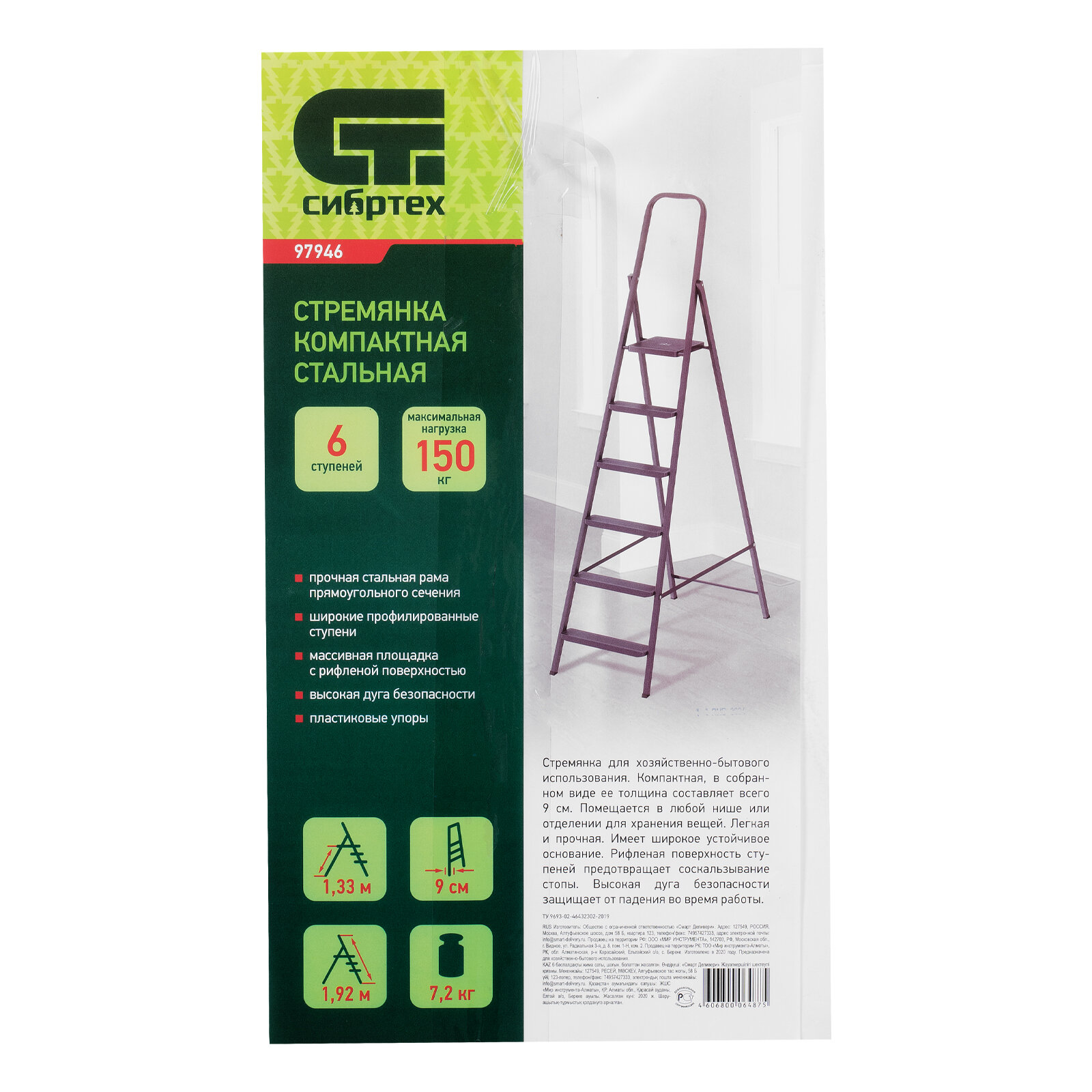 Купить Стремянка 6 ступеней, компактная, стальная Россия Сибртех Сибртех