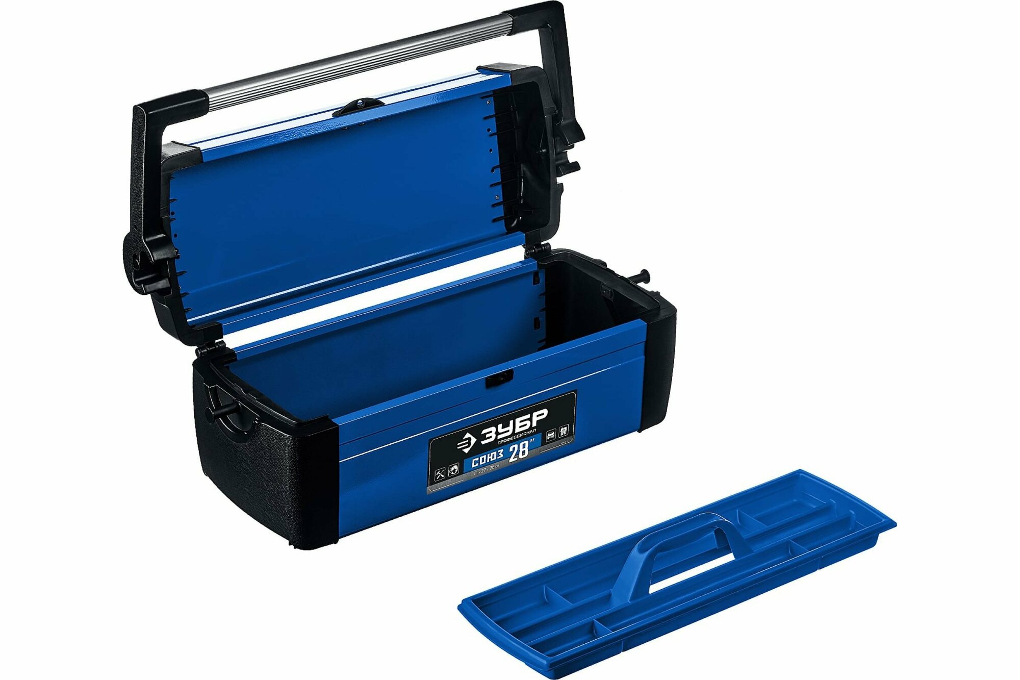 ЗУБР СОЮЗ-28, 710 x 270 x 260 мм, (28″), металлический ящик для инструментов, Профессионал (38151-28)