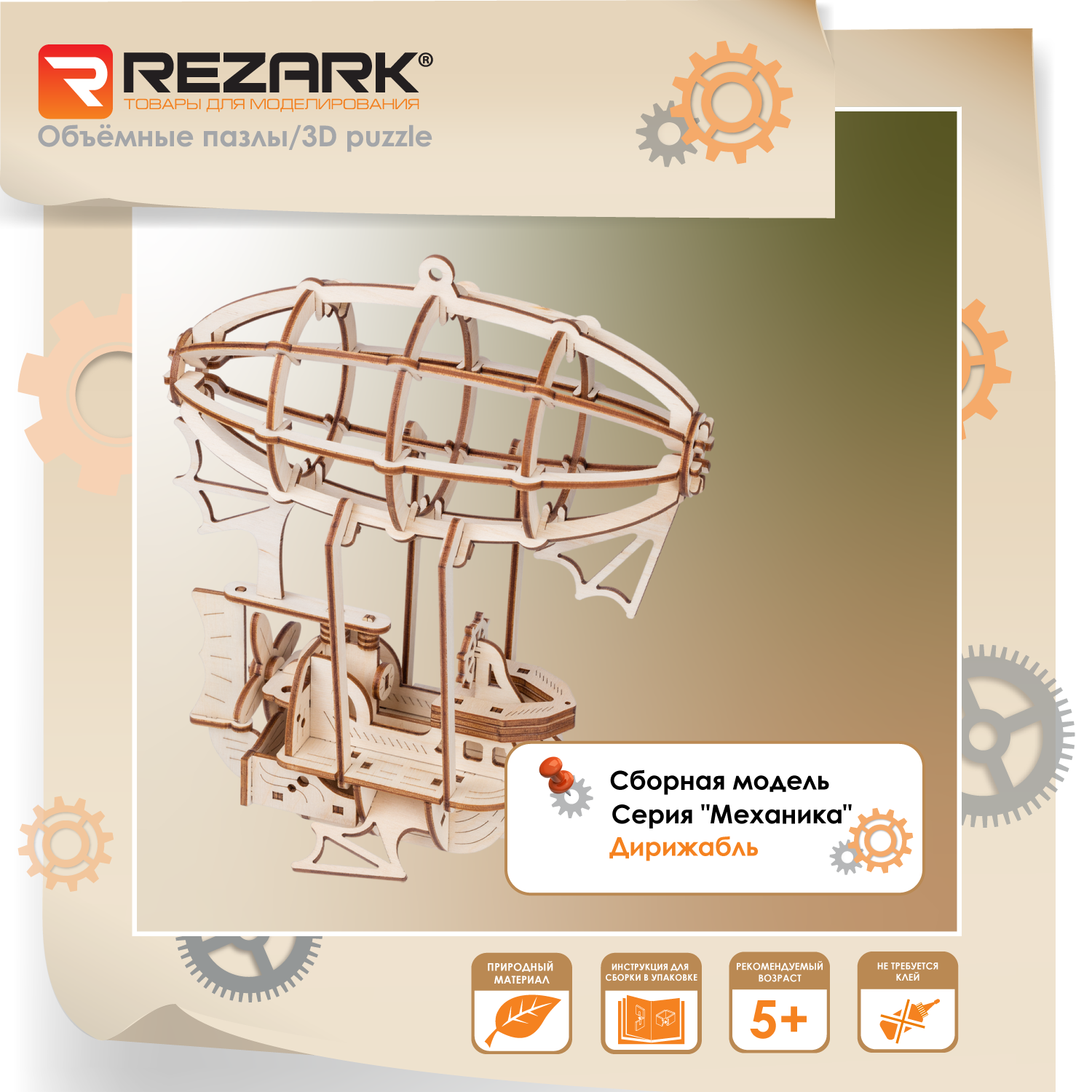 Сборная модель (фанера) "REZARK" Серия "Механика" Пазл 3D 60 элементов MGR-7 Дирижабль интересное:
