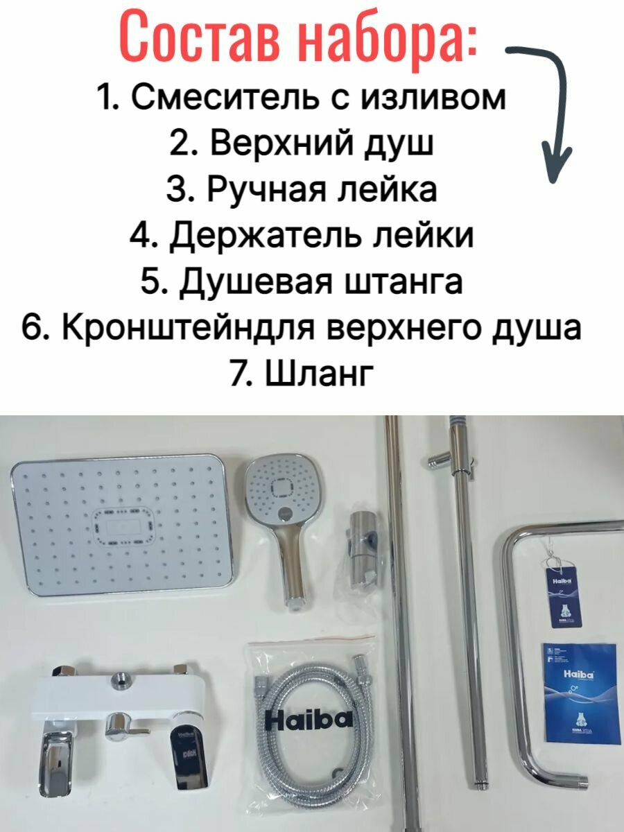 СохранитьДушевая система HAIBA со смесителем, тропическим душем, поворотным изливом и ручной лейкой, материал латунь, увет: белый интересное:
