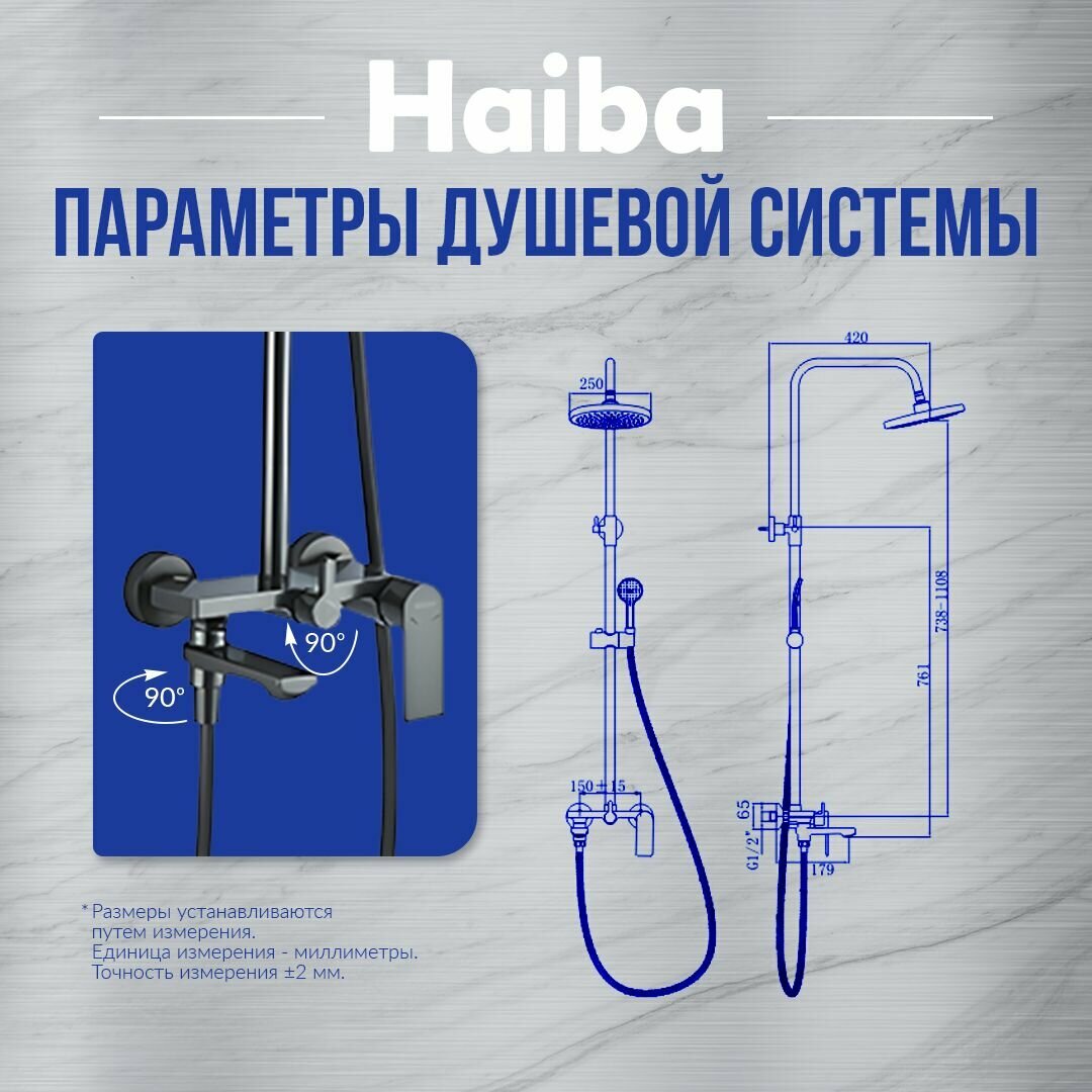Душевая система, душевой гарнитур с верхним душем HAIBA HB24505-3 смесителем, поворотным изливом и ручной лейкой, графит