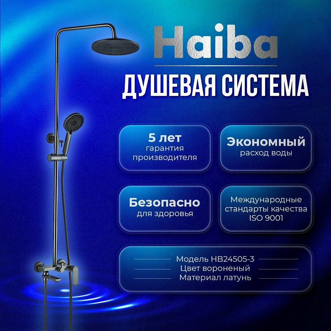 Душевая система с тропическим душем; Haiba HB24505-3 цвет- вороненная сталь(графитовый)
