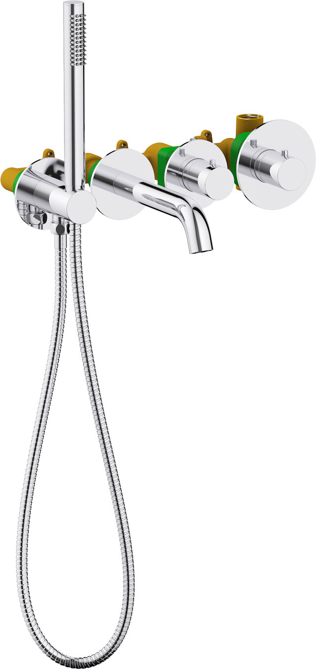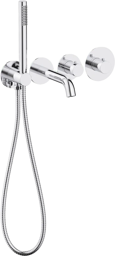 | Комплектация | держатель лейки / тропический душ / декоративная панель / Смеситель / ручная лейка / держатель ручной лейки / шланг для душа / излив / фиксирующее кольцо / ручка термостата / ручка регулирования напора / дивертор |