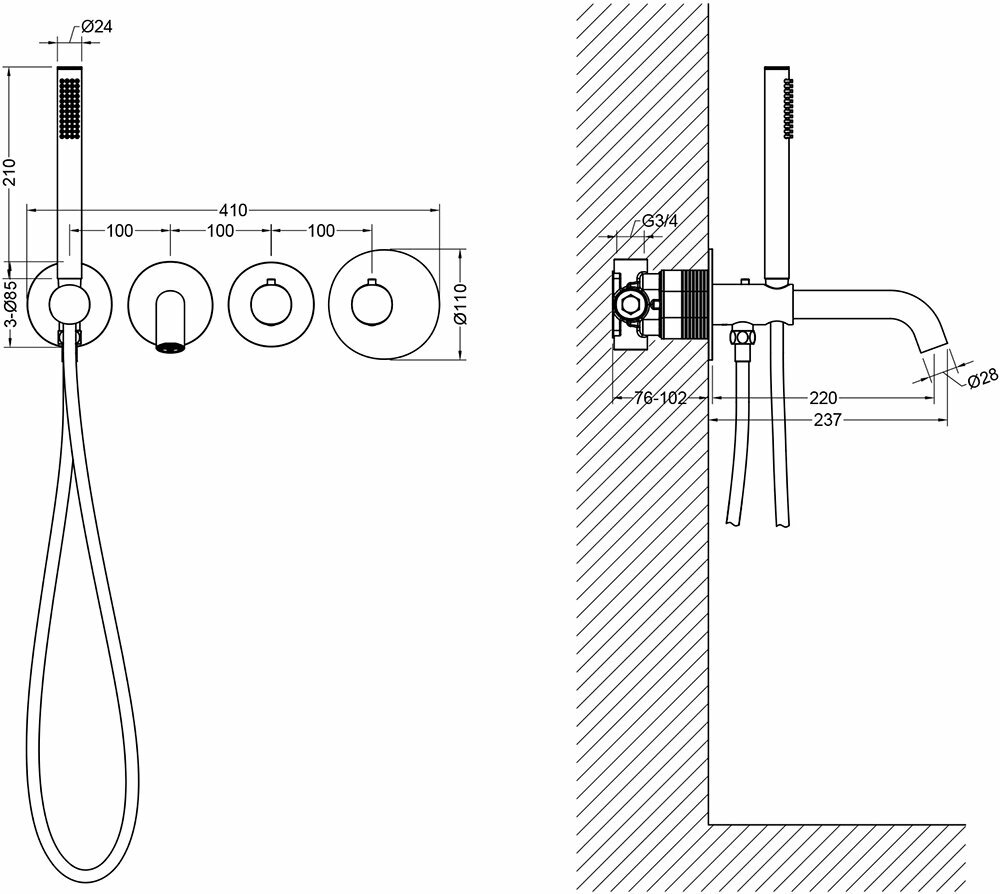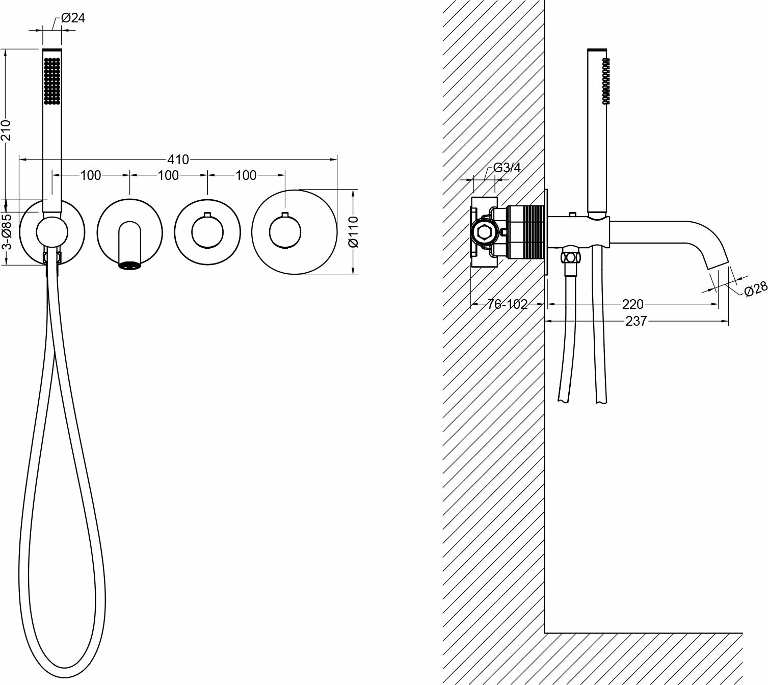 | Дополнительная информация | трехрычажное управление; размер верхнего душа 200 x 200 мм; угол наклона верхней лейки регулируется в пределах 35°; поворот излива обеспечивает переключение потока воды с излива на ручную лейку; излив поворачивается влево на 90° |