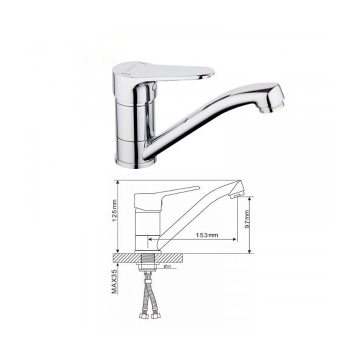Смеситель для кухни 35к G4536 GAPPO длинный пов. излив, п/гайку, хром