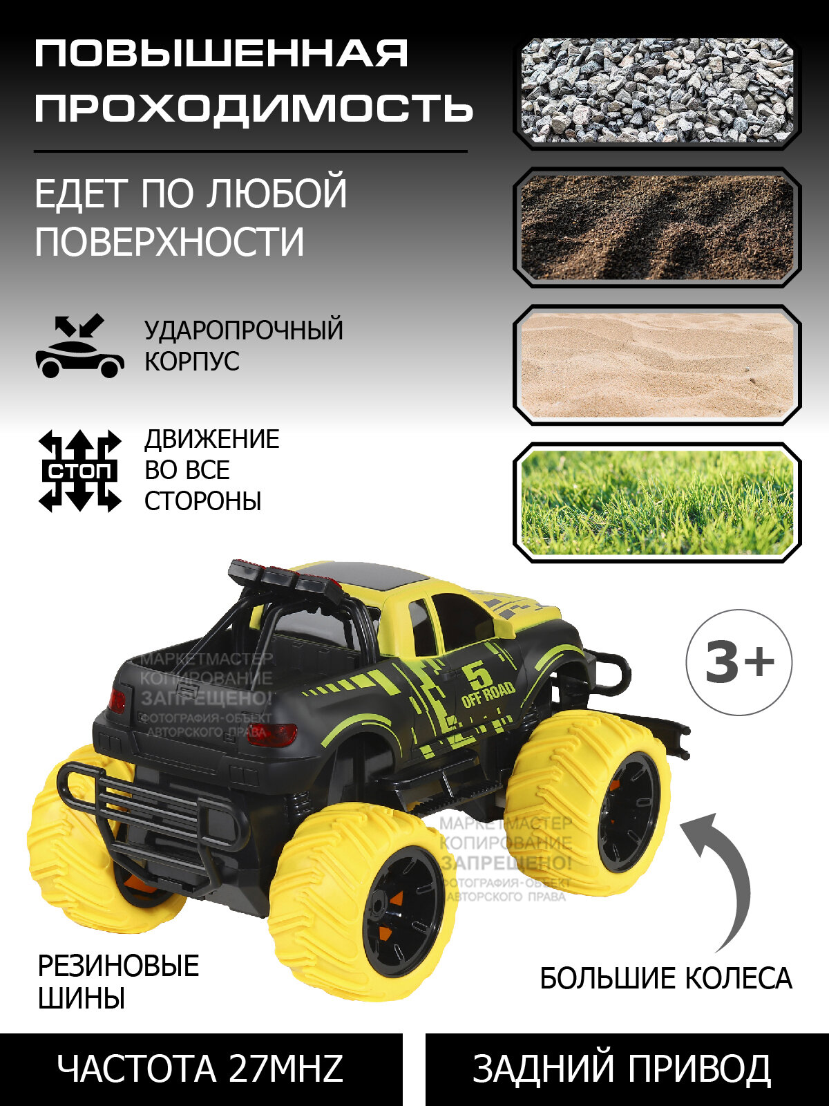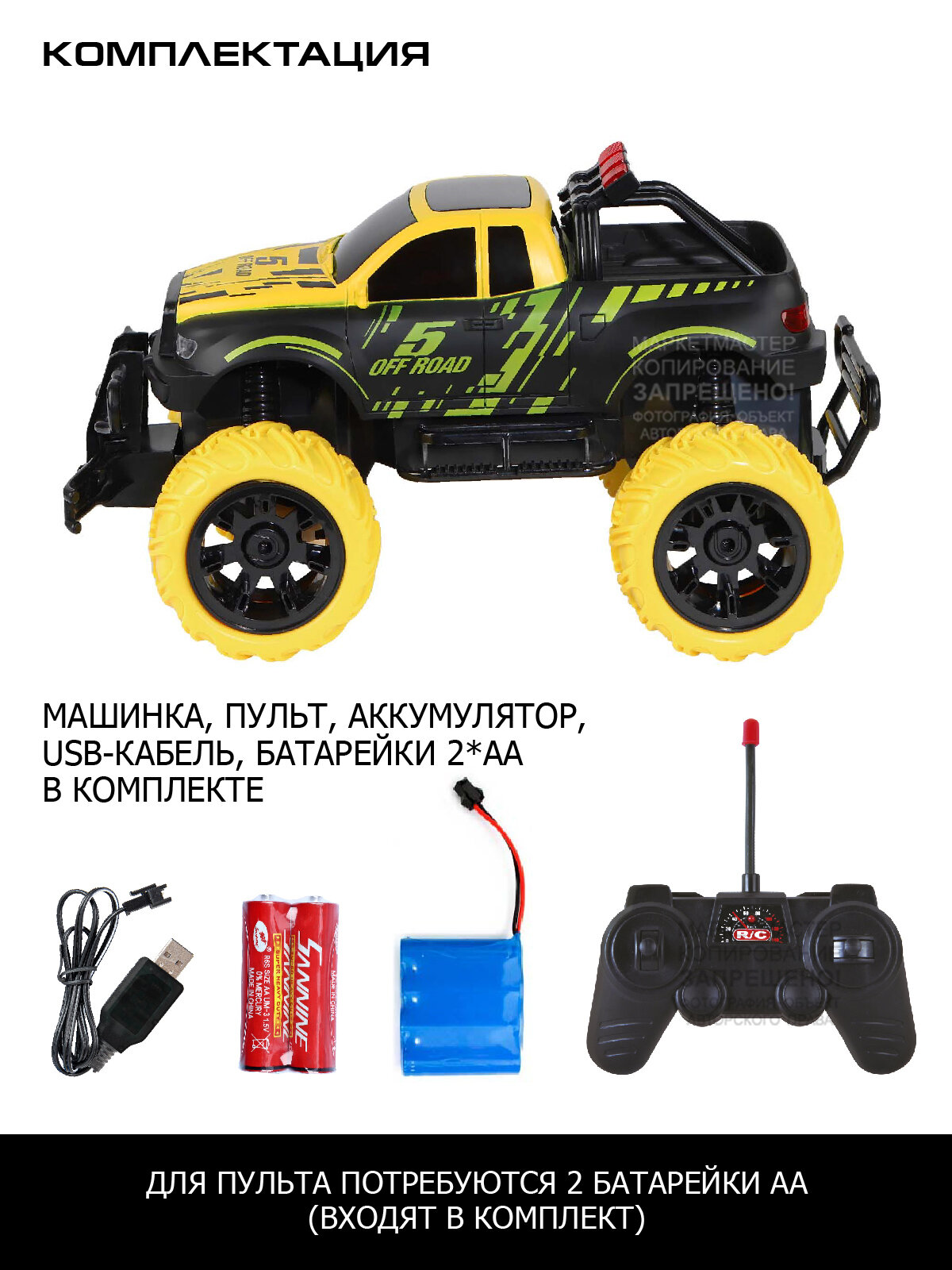 СохранитьМонстр-трак на радиоуправлении ТМ Джамбо Тойз, 2WD, М1:16, с зарядкой, 4 канала, черный/желтый, JB0404773 интересное: