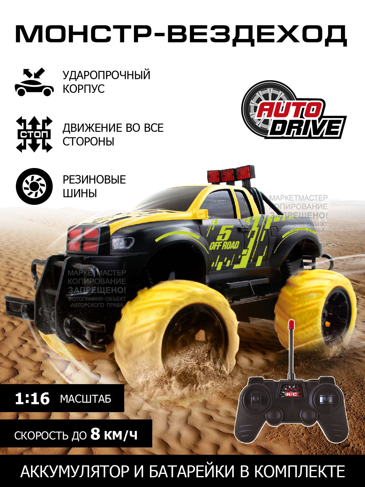 Монстр-трак на радиоуправлении ТМ AUTODRIVE, 2WD, М1:16, с зарядкой, 4 канала, черный/желтый, JB0404773