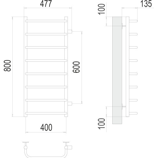 Полотенцесушитель TERMINUS Стандарт П8 (ШВ:400х800) водяной, нерж.сталь, боковое подкл., м/о 600