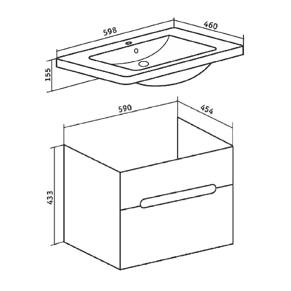 Тумба под раковину / Runo / Парма 60 / подвесная / 1 ящик / под умывальник Omega 60