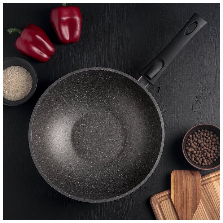 Сковорода - вок «Гранит», d=28 см, съёмная ручка, антипригарное покрытие, цвет серый интересное:
