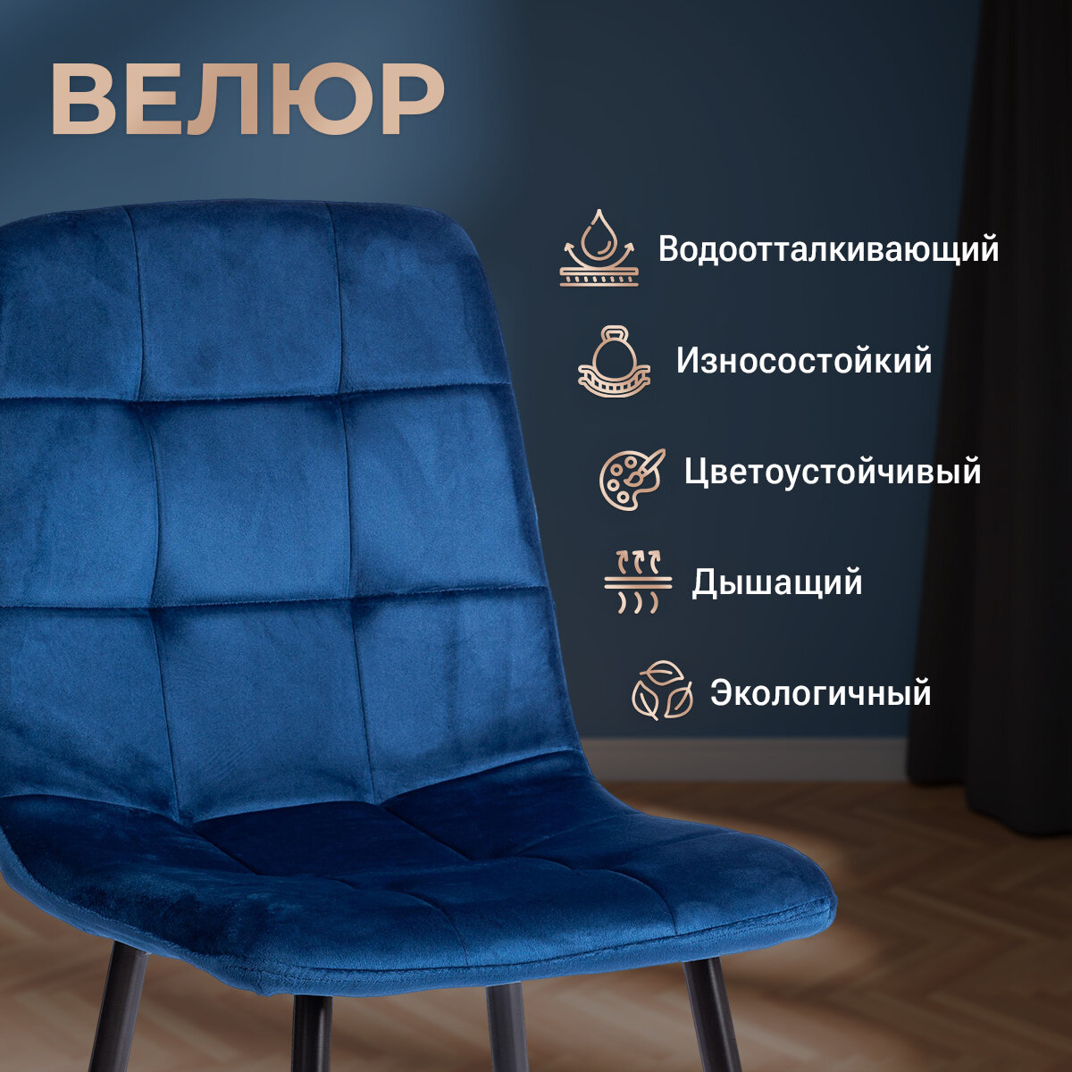 СохранитьКомплект стульев Tetchair CHILLY (mod. JSC-220) Велюр/металл , 44,5х52,5х88 см, Blue (синий) HLR64 / черный (4 шт/уп) интересное: