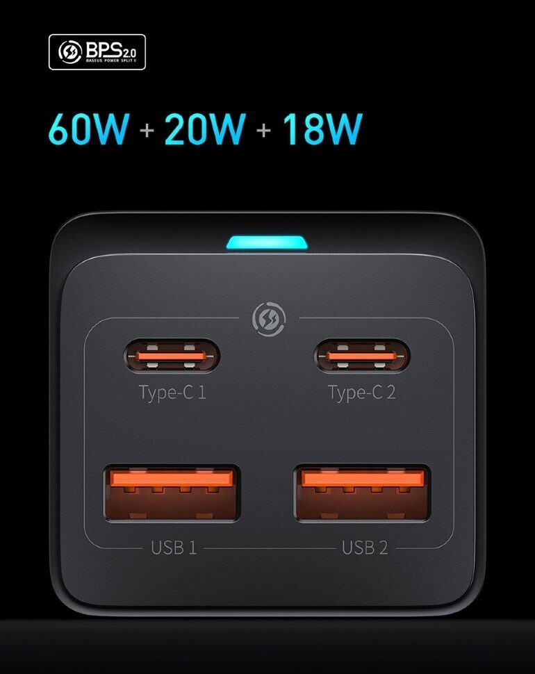 | Плюсы: | 4 порта, 65 ват, Baseus, качество провода, самой зарядки |