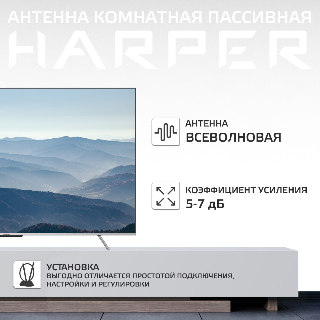 Антенна для телевизора комнатная (пассивная, всеволновая) HARPER ADVB-2010, черный