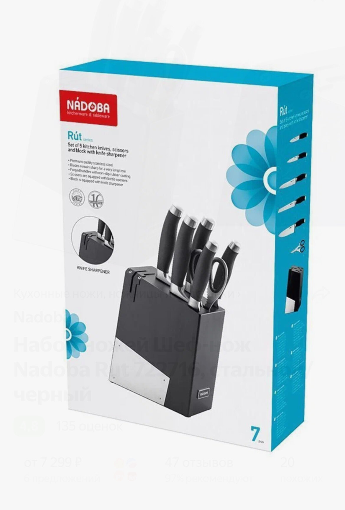 Набор RUT NADOBA 5 кухонных ножей, ножницы, блок для ножей с ножеточкой
