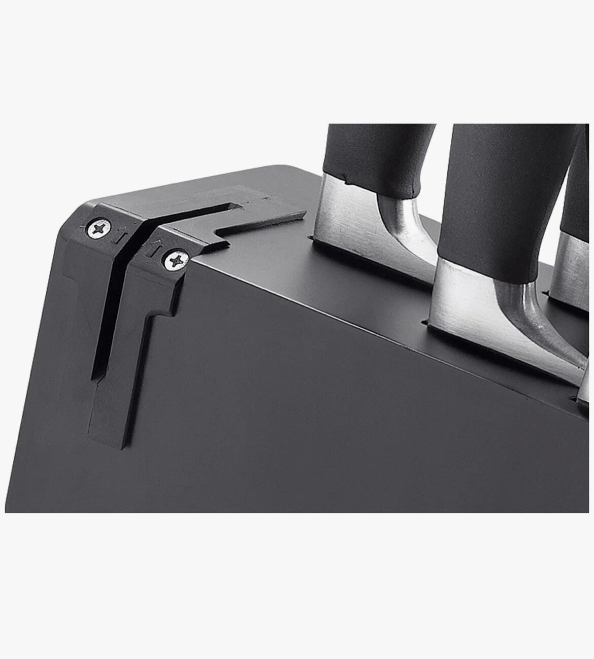 | Дополнительная информация | тип подставки: закрытая; способ фиксации ножей: пазы; марка стали ножей: X45CrMoV15; твердость стали ножей: 55-57 HRC |