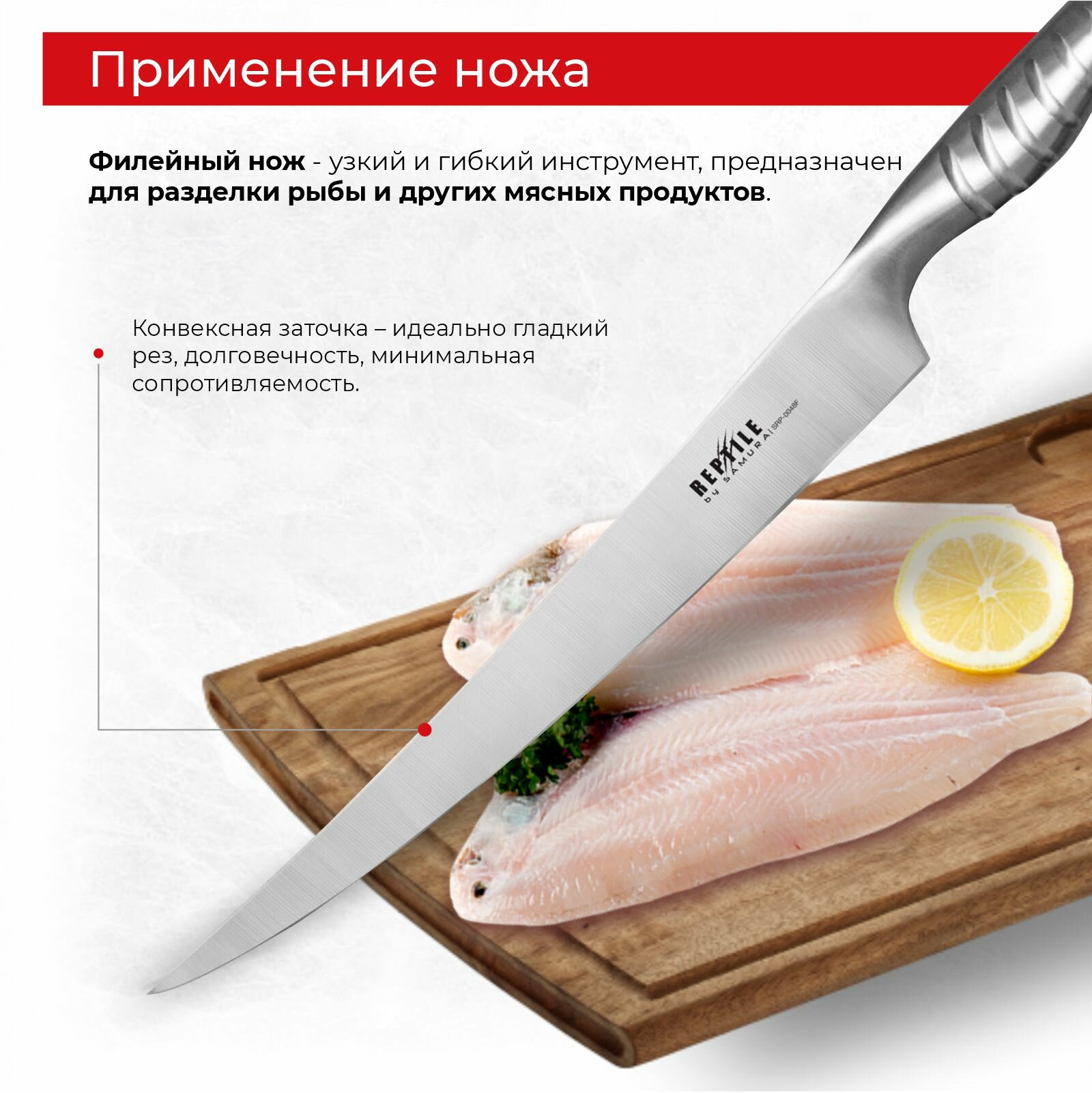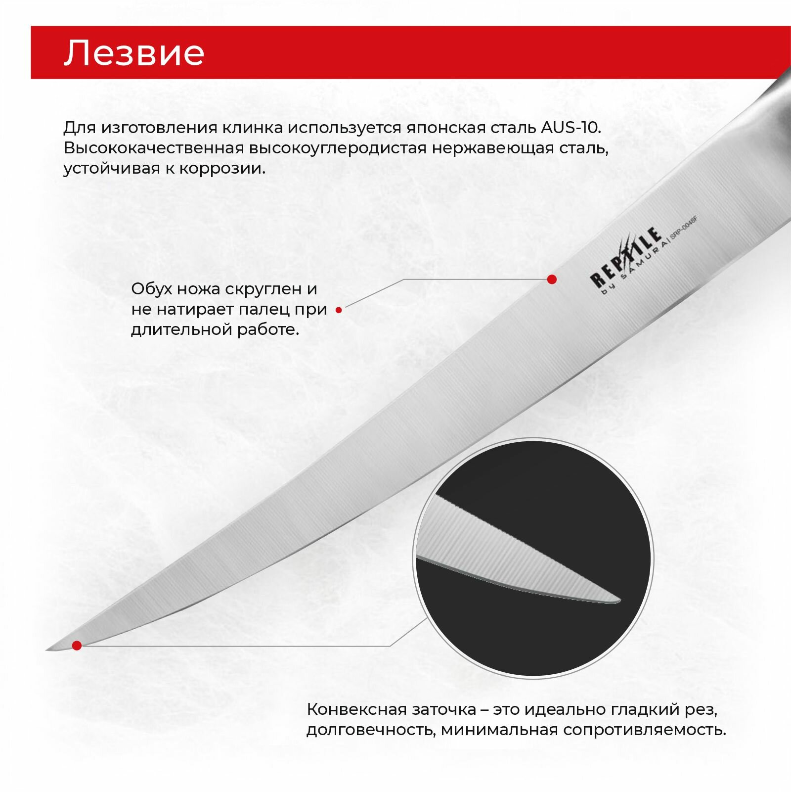 СохранитьНож кухонный поварской Samura Reptile филейный для нарезки мяса рыбы профессиональный SRP-0048F интересное: