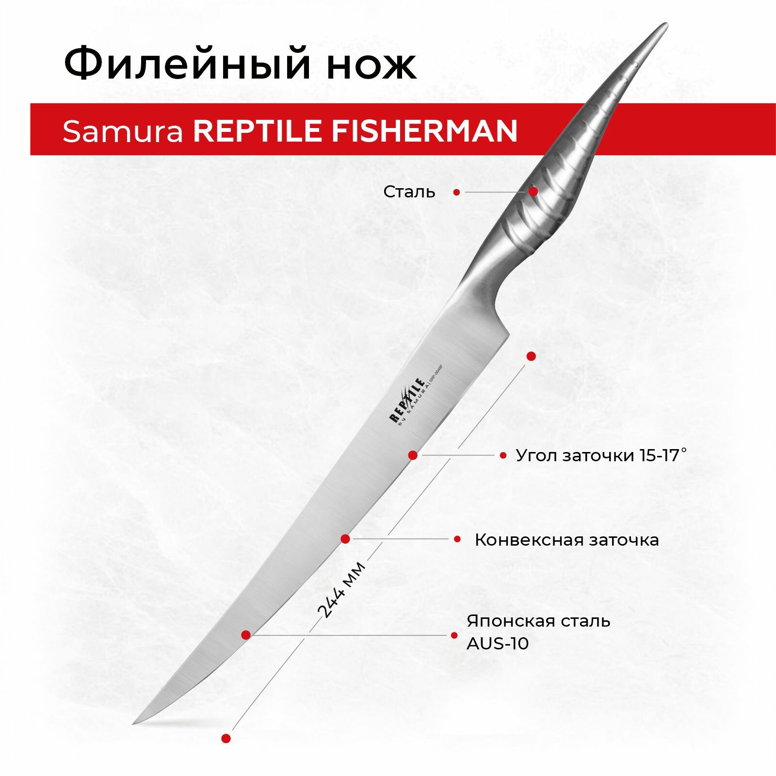 Нож кухонный филейный Samura REPTILE Swordfish, 252 мм, AUS-10 (SRP-0048S/K)