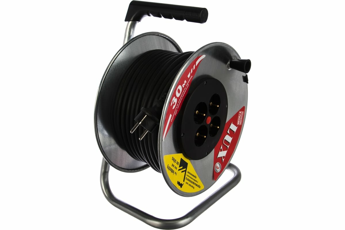 Удлинитель 30 м металлическая катушка LUX КГ 3x2.5 16А 4 розетки с заземлением 45130, 880094