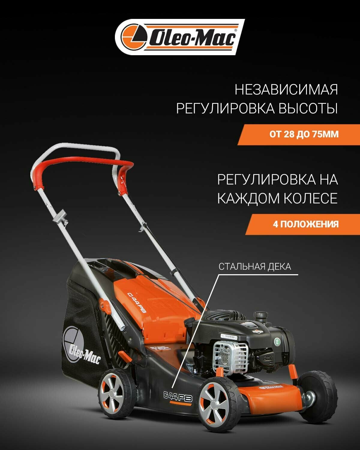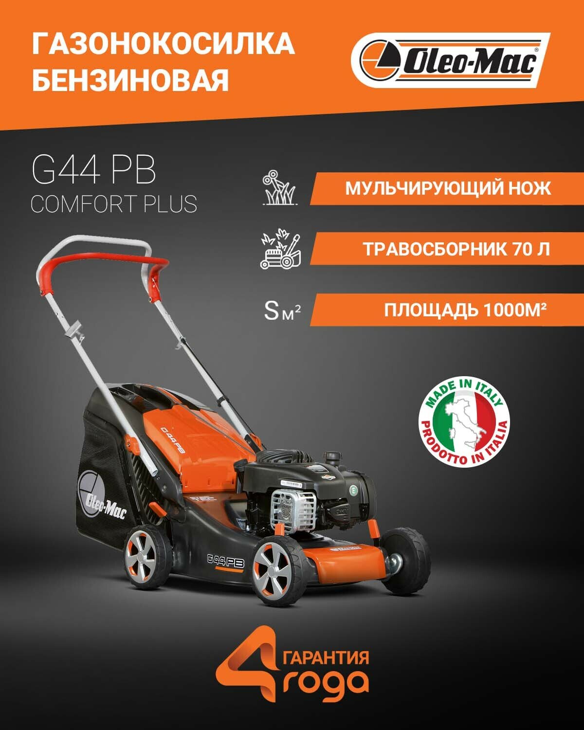 Газонокосилка бензиновая Oleo-Mac G 44 РВ Comfort Plus несамоходная интересное: