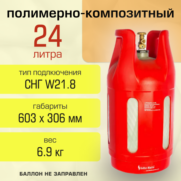 Ниже Вы можете прочитать отзывы на Баллон для сжиженного газа полимерно-композитный LiteSafe объемом 24 литра (поставляется не заправленным), ознакомится с подробными характеристиками, посмотреть интересные обзоры и фотографии на Баллон для сжиженного газа полимерно-композитный LiteSafe объемом 24 литра (поставляется не заправленным).