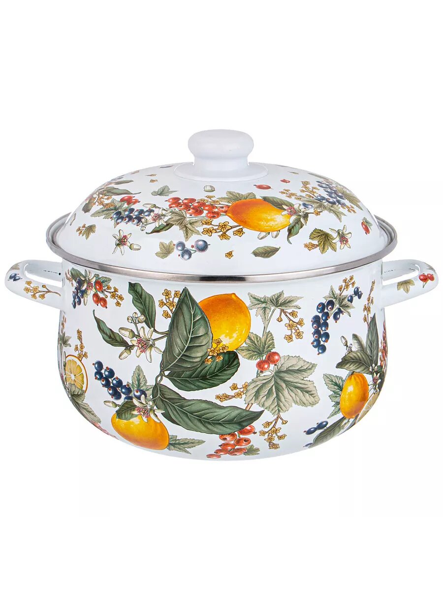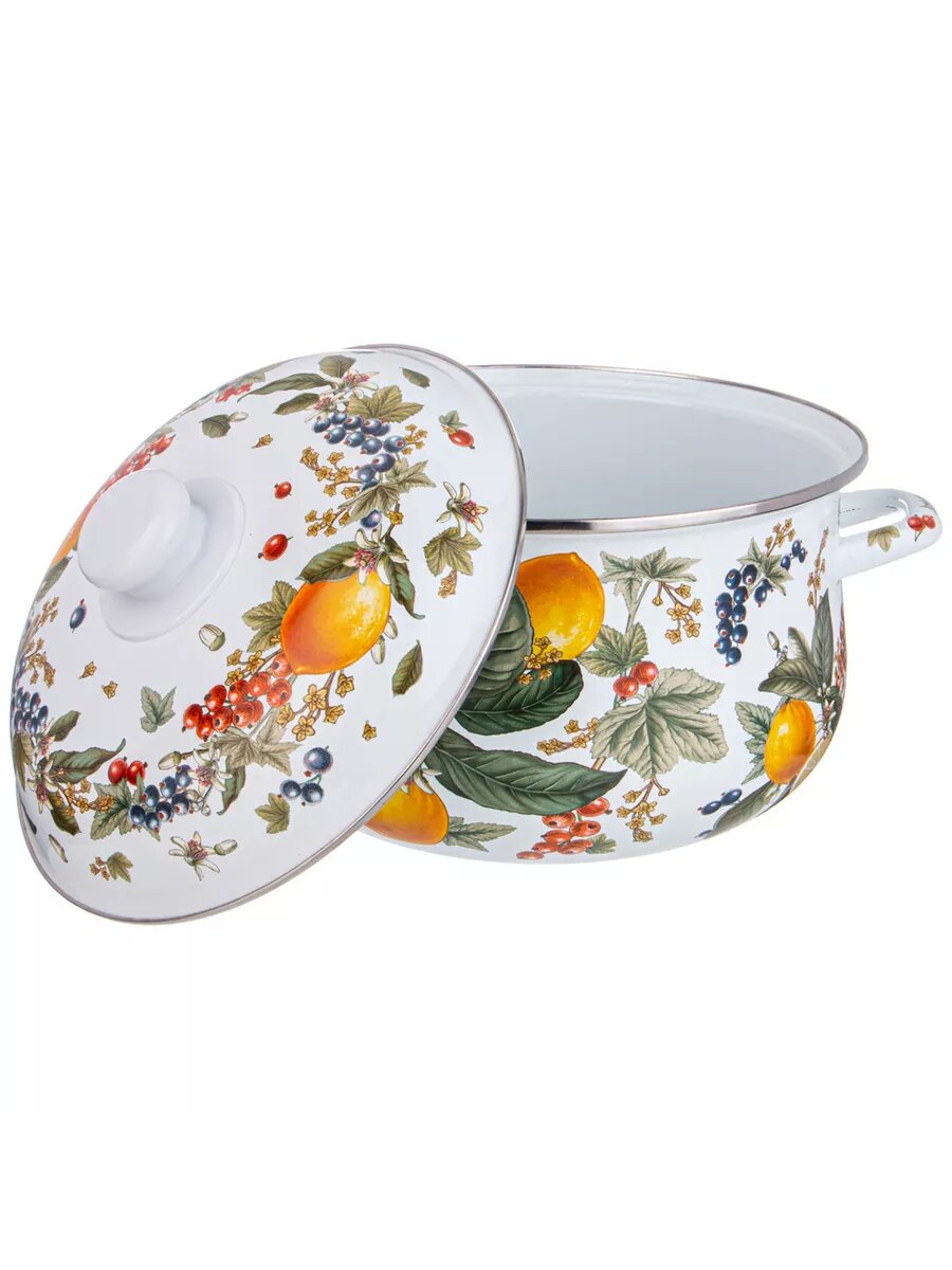 Кастрюля эмалированная Agness / Агнесс Прованс Лимоны белый объем 2л / посуда для всех видов плит