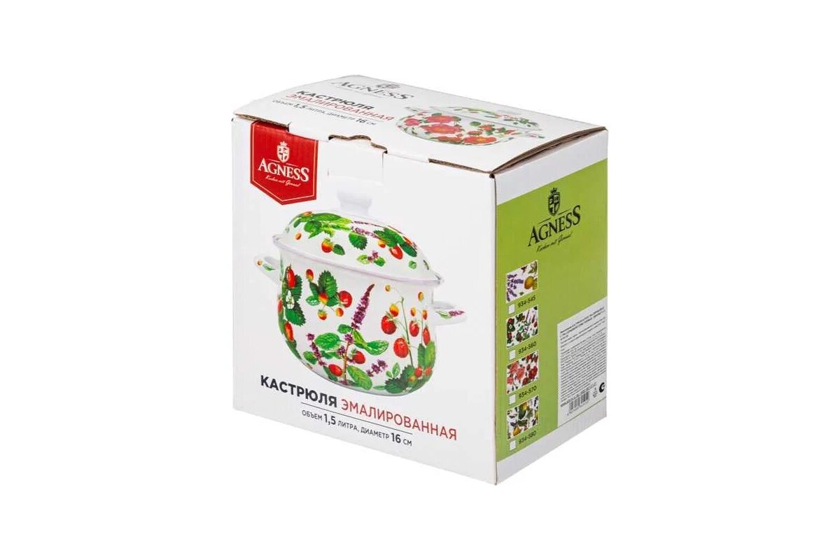 Кастрюля agness эмалированная с эмал.крышкой серия фруктовая корзина, 1.5 л, 16*10 см KSG-934-580
